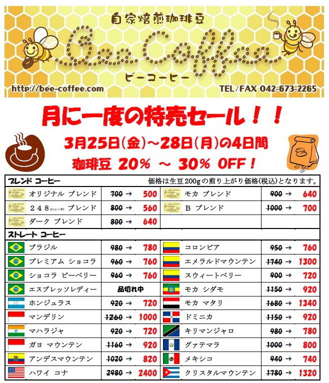 明日より、毎月恒例の特売セールです