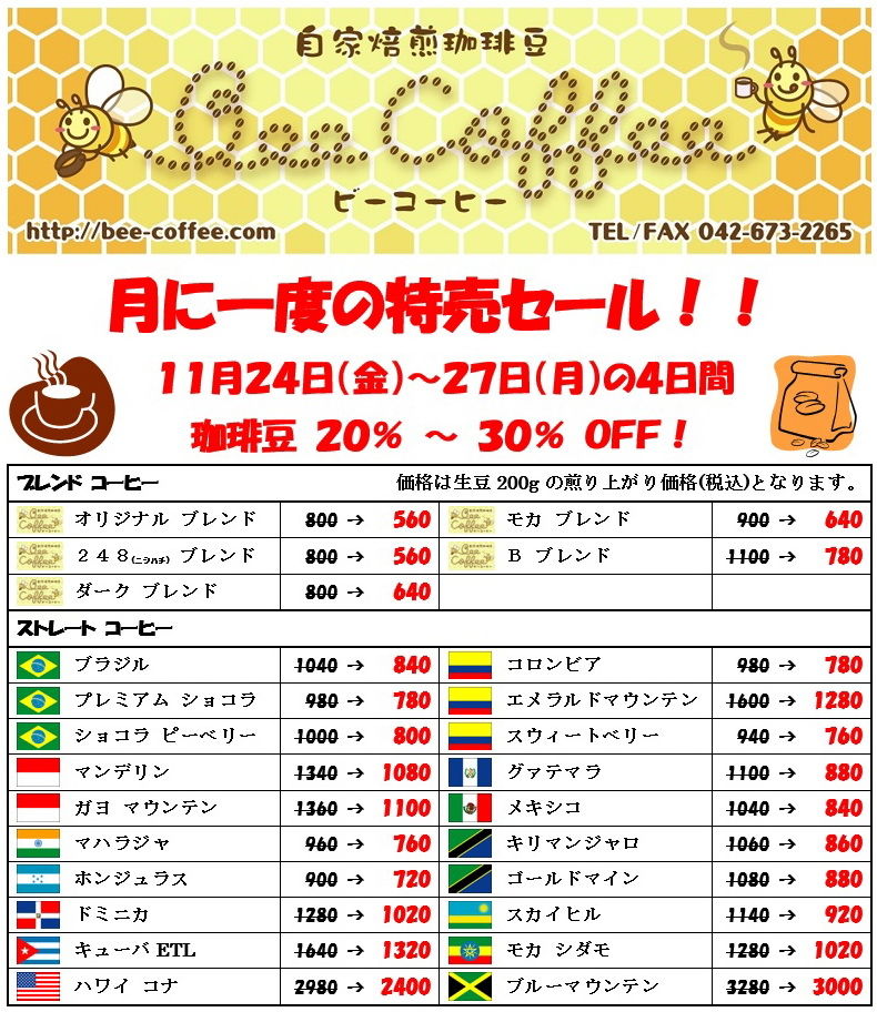 11月の特売セール