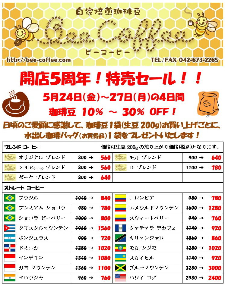 24日(金)、おかげさまで開店5周年を迎えます。![]()