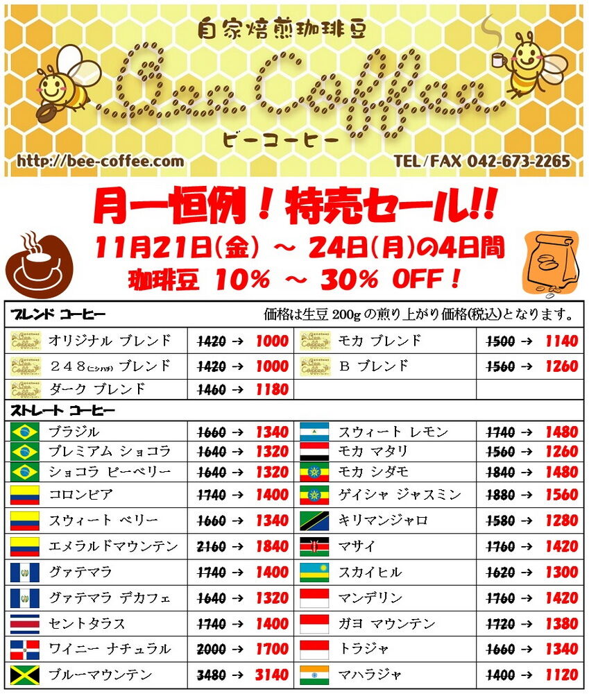 11月の特売セール![]()