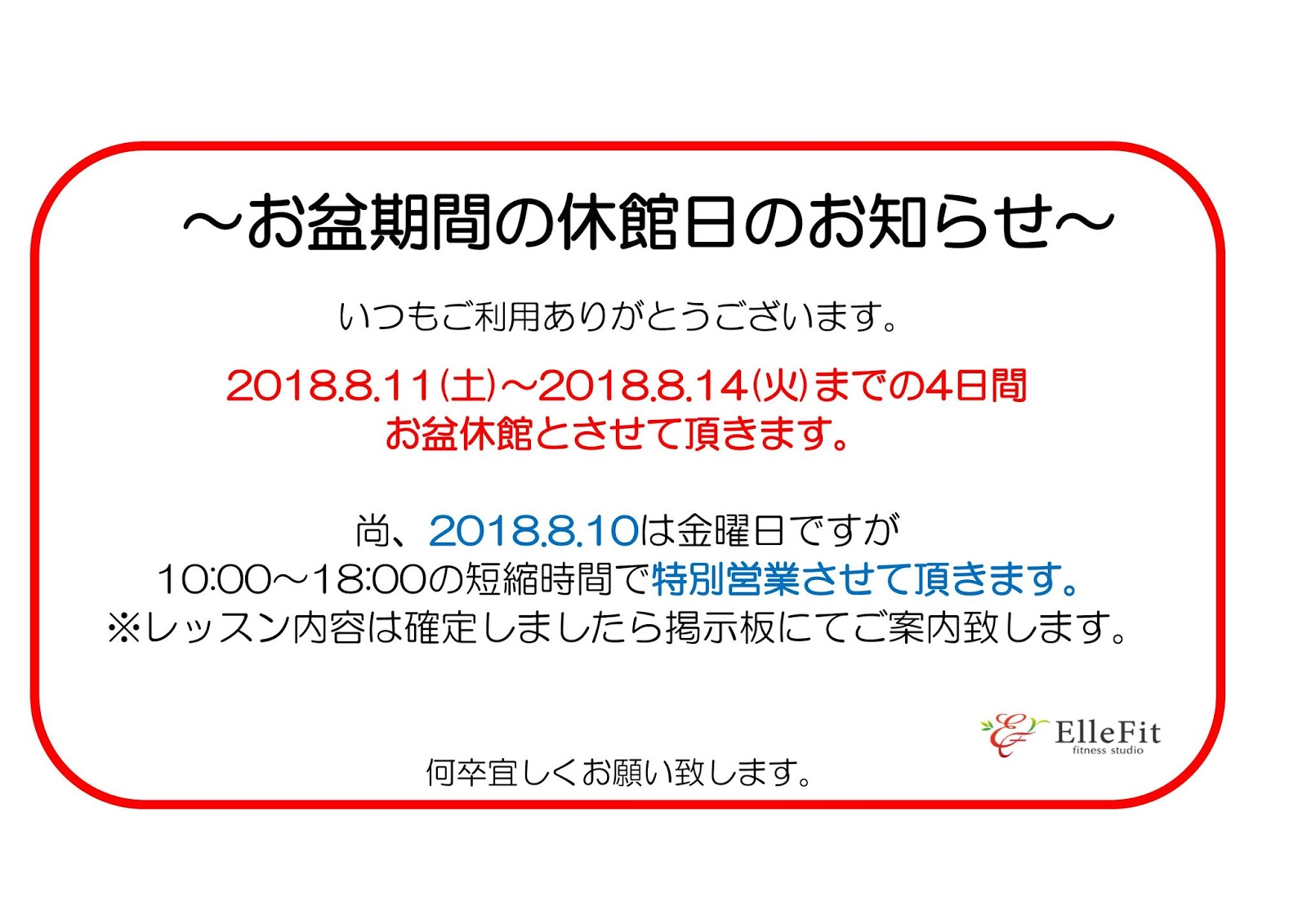 普段は定休日の金曜日ですが、レッスンもございますので、お盆前に是非一汗かきにご来館ください☆