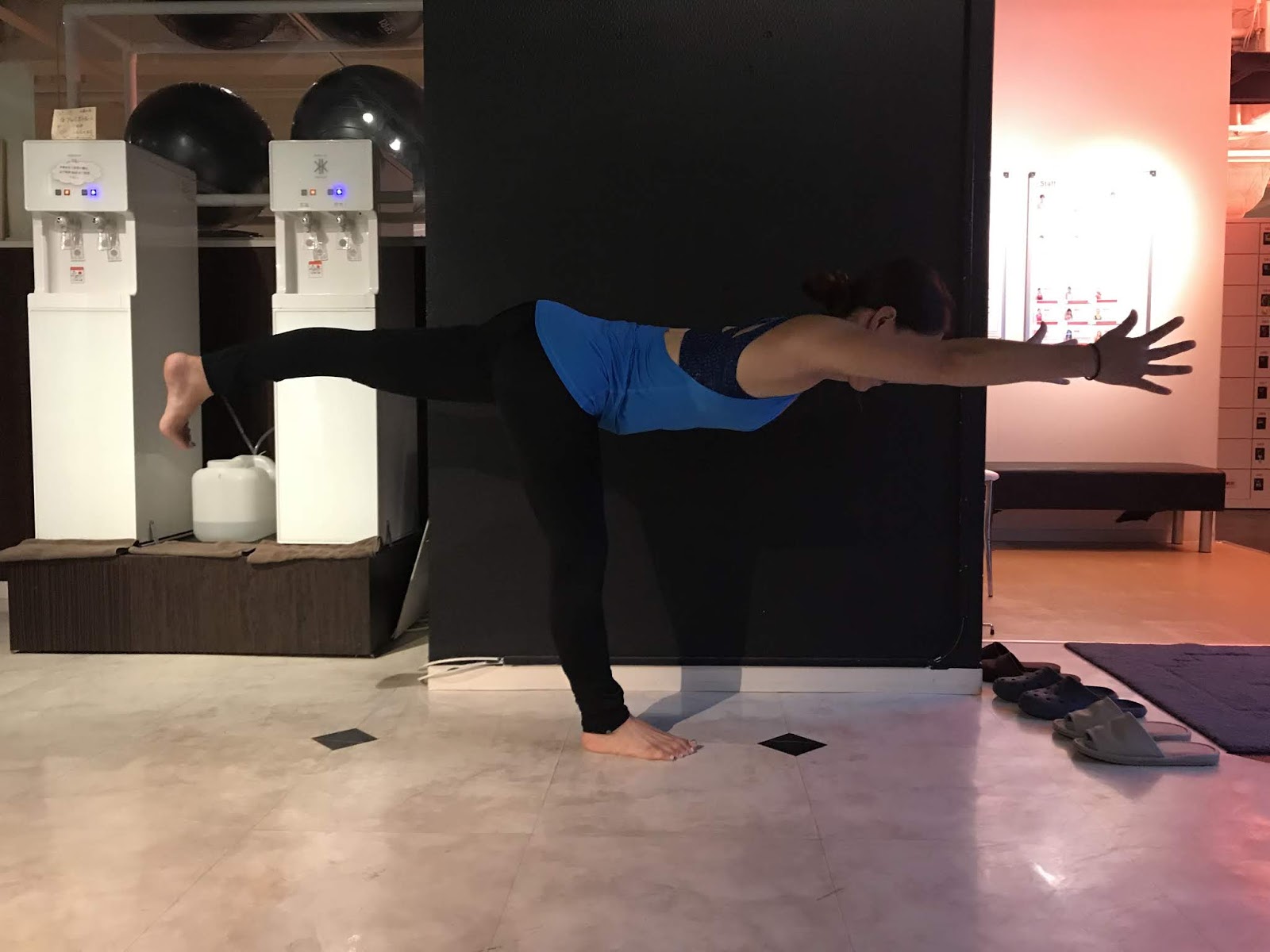 T字を維持するのが難しいので鏡を見てポーズをとっていきましょう