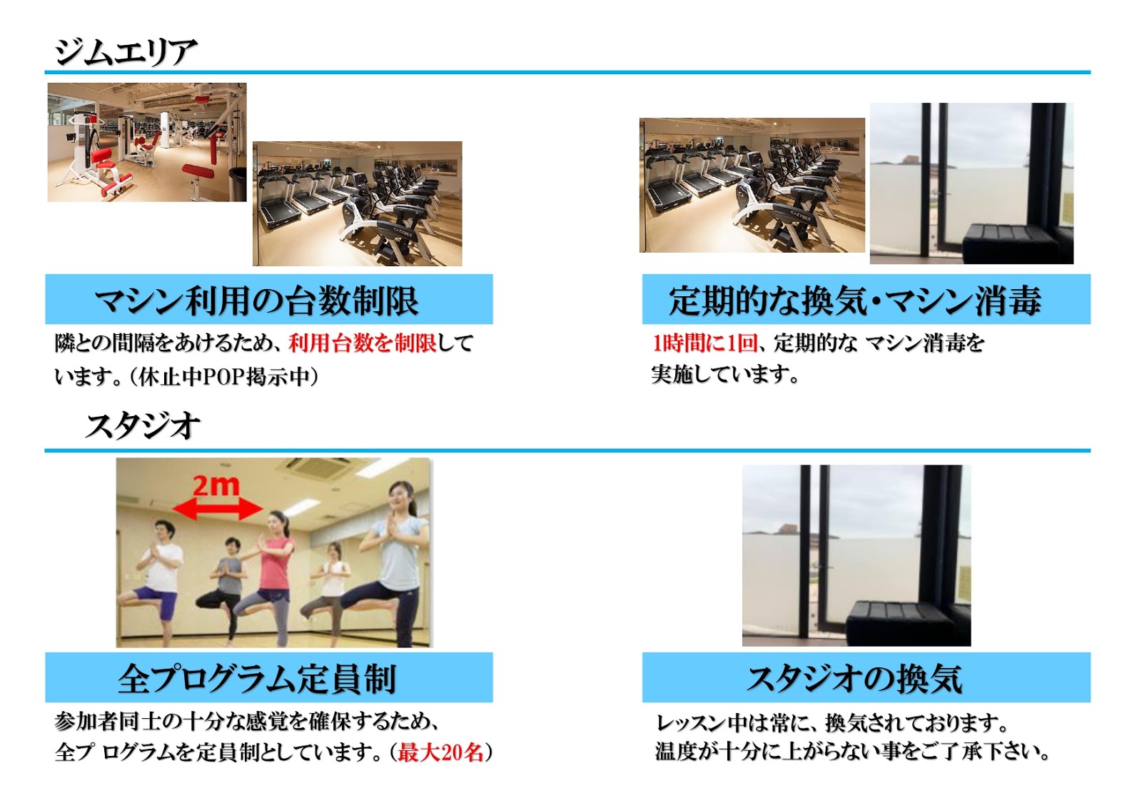 マシンや共有マットをご利用頂いた後は、館内の除菌スプレーや手洗いうがいでの感染対策をお願い致します。